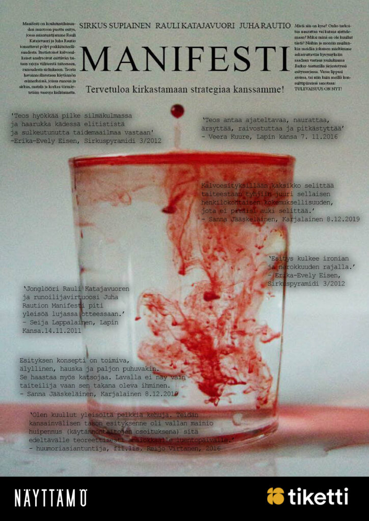 ’Jo vuosien ajan olen listannut typistävin sanamuodoin elämääni, jatkuvasti ajatellut ansioluetteloni julkisivun kiilloitusta. En tiedä missä määrin, jos ollenkaan, se on edistänyt taiteellista toimintaani, mutta niin sanotulle sielulleni se on tehnyt mittaamatonta vahinkoa. Kerta toisensa jälkeen minä alistun peliin. Hävettää katsoa peiliin ja myöntää, että olen synnynnäinen mukautuja, vaikka hyvin tiedän että pitäisi asettua vastaan. Yhtä kaikki. Aikaa ei ole, on vain maatuvan aineksen uhma.’ -Juha Rautio